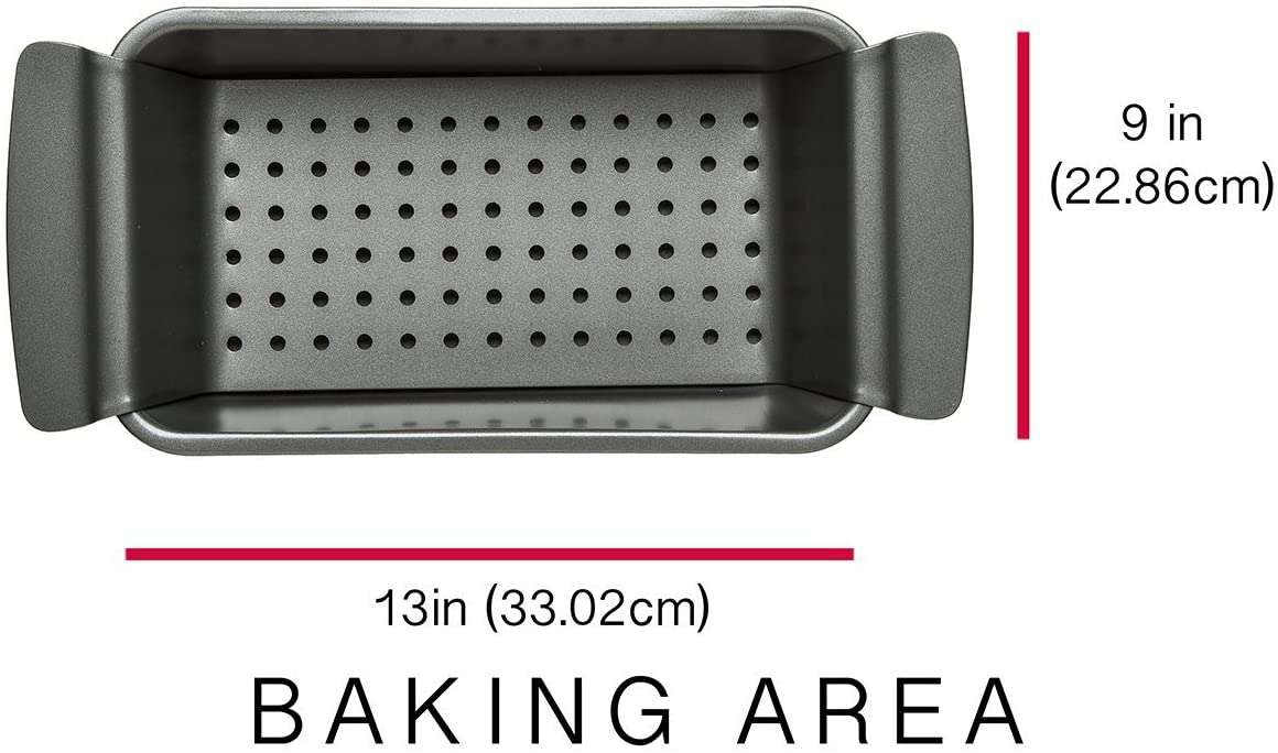 BAKE YOUR WAY: Oven safe up to 450°F. This pan is also great for loaf cakes, bread and more. INCLUDES: 9" x 4⅜" Meatloaf Pan with Perforated Tray