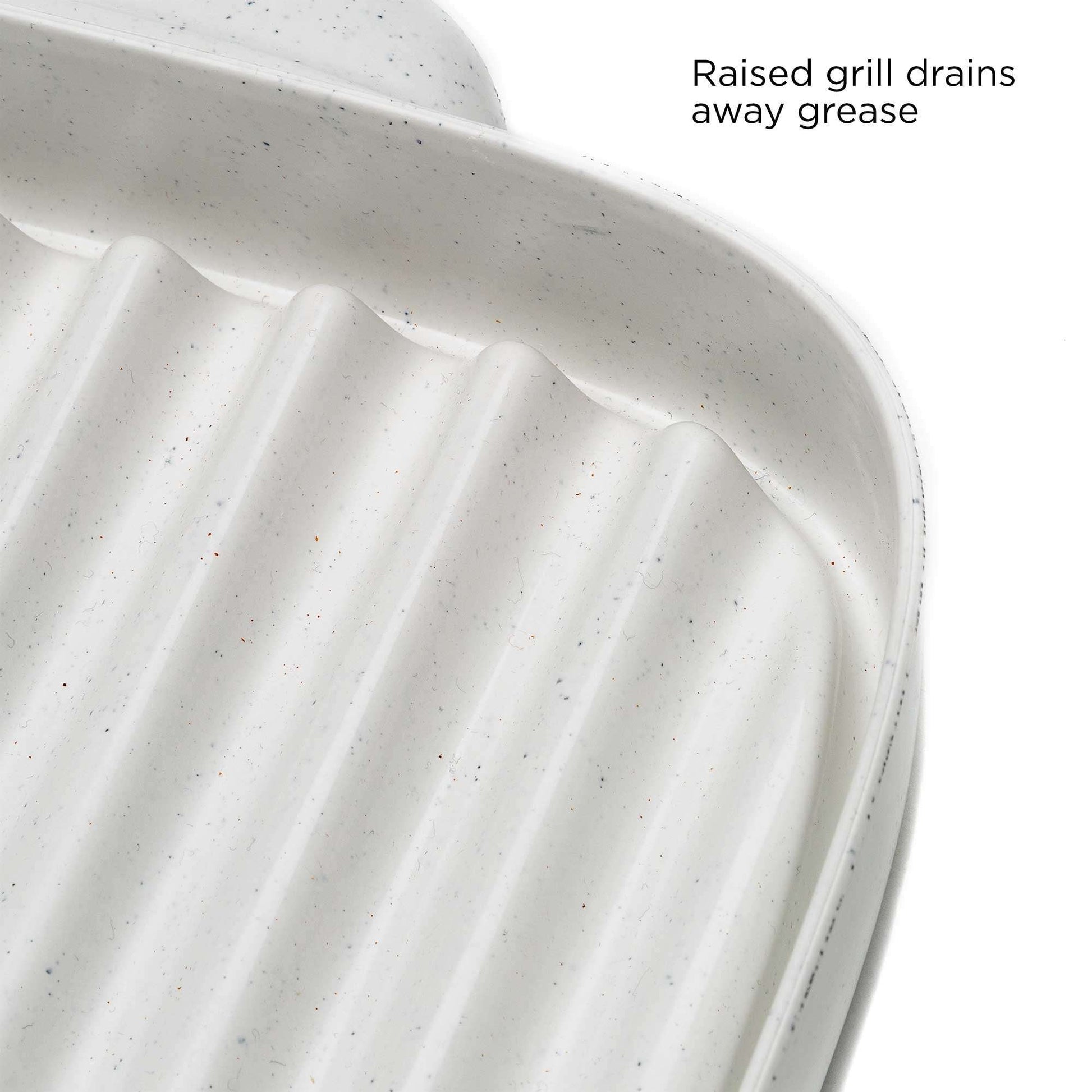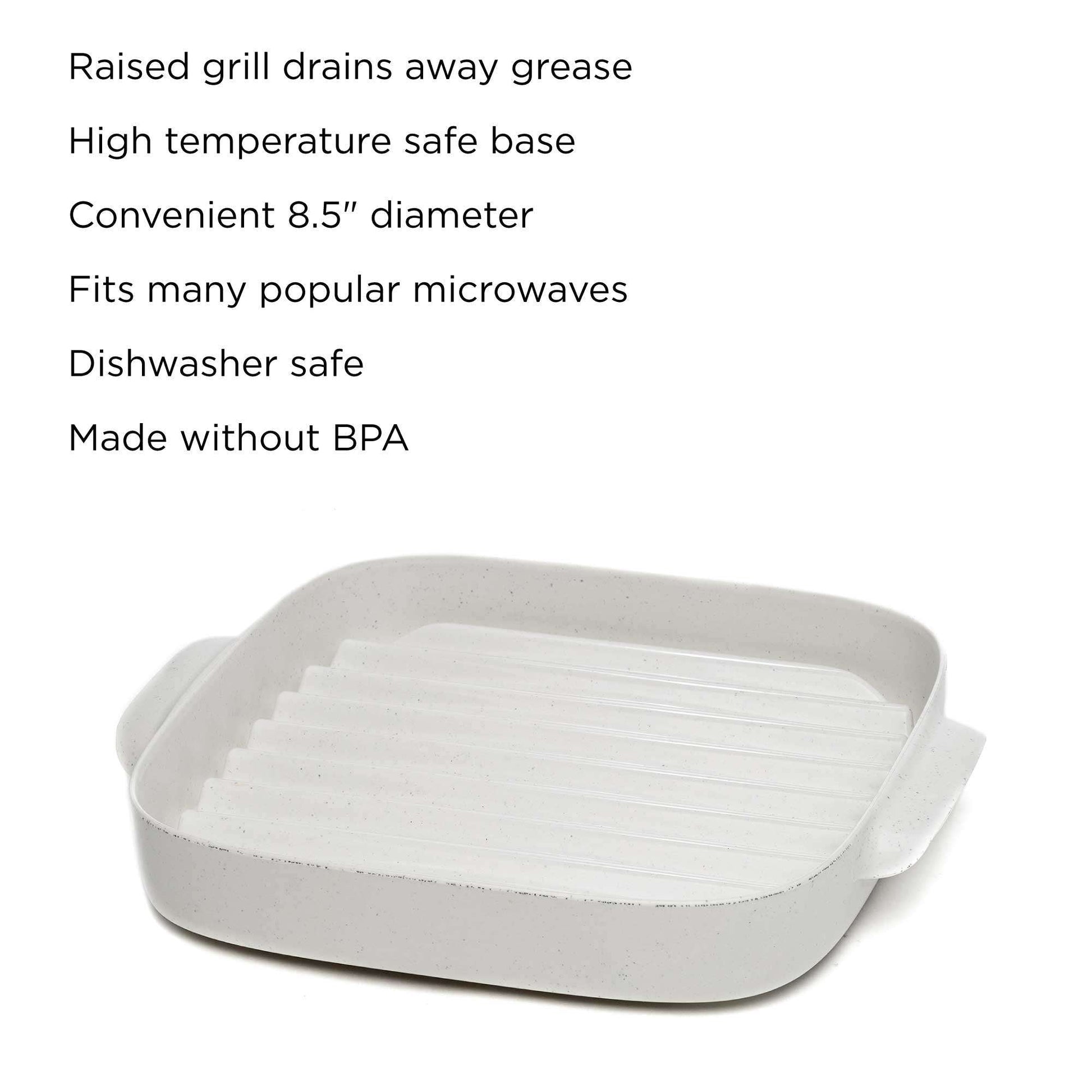 DELICIOUS BACON- The raised grill marks on the microwave bacon cooker drain away grease from the bacon, leaving you with crispy bacon without the extra grease.